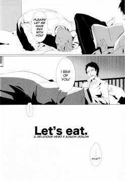 (C78) Let's Eat. Shujinkou ga Adachi Tohru o Oishiku Itadaku Hon | Let's Eat. A Delicious Hero, Adachi Tohru Doujinshi (Persona 4)