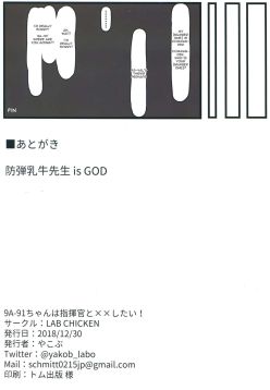 (C95) 9A-91-chan wa Shikikan to Chomechome Shitai! | 9A-91 Wants to Do Naughty Things with Commander! (Girls' Frontline)