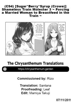 (C94) Chijoku no Chikan Densha 3 ~ Hitozuma Shanai Kyousei Junyuu ~ | Shameless Train Molester 3 ~ Forcing a Married Woman to Breastfeed in the Train ~