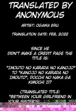 "Imouto no Karada no Kanojo" to "Kanojo no Karada no Imouto", Docchi no Naka ga Kimochi Ii? Chapters 1-2