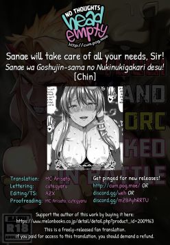 Sanae wa Goshujin-sama no Nukinukigakari desu! | Sanae Will Take Care of All Your Needs, Sir!
