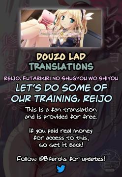 Reijo, Futari Kiri no Shugyou o Shiyou. | Let's Do Some Of Our Training, Reijo.